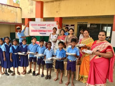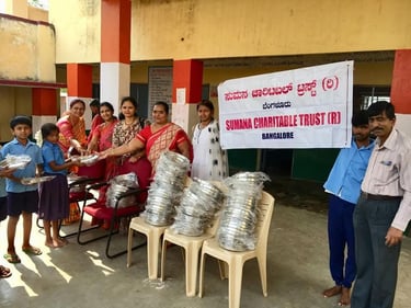 We have provided government schools with steel plates for mid-day meals, clean drinking water systems, and mini libraries. These contributions help promote health, hygiene, and reading habits among children.
