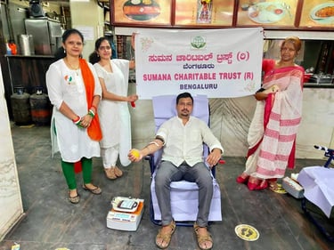 Sumana Charitable Trust has organized multiple blood donation drives to support local hospitals and patients in need. These camps bring together volunteers and donors from all walks of life, spreading awareness about the importance of saving lives through voluntary blood donation.